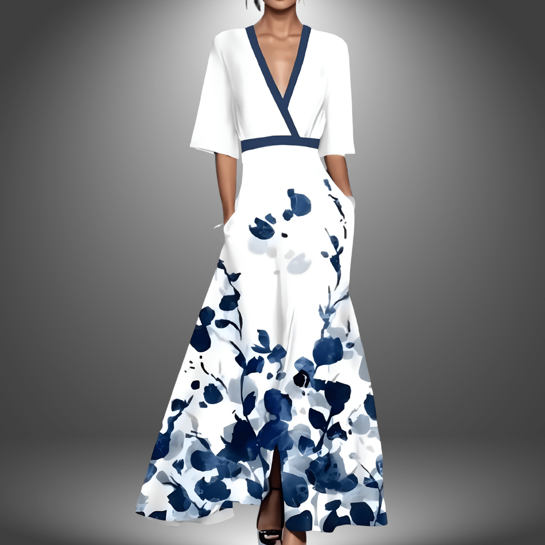 Apportez une bouffée de fraîcheur et de style à votre garde-robe avec cette élégante robe longue, parfaite pour les occasions les plus spéciales. Fabriquée dans un tissu léger et fluide, la robe présente un imprimé floral audacieux et vibrant qui capture l'essence d'un jardin en pleine floraison. Le délicat décolleté en V et les manches trois-quarts ajoutent une touche de féminité et de grâce, tandis que la ceinture à la taille définit la silhouette, sublimant vos formes avec raffinement. La jupe ample et fluide crée un mouvement gracieux à chaque pas, donnant une sensation de liberté et de légèreté. Idéale pour les mariages, les événements en soirée ou une journée d'été en ville, cette robe vous fera sentir sûre de vous, élégante et inoubliable.